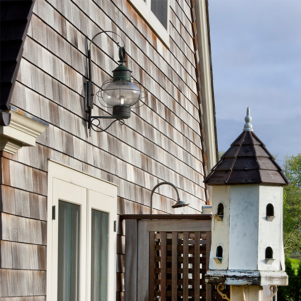 Originally fueled by whale oil, this shepherd’s crook mounted lantern was frequently associated with maritime use. Inspired by a hanging lantern from New England, c. 1830, featuring smooth or melon hand-blown glass.