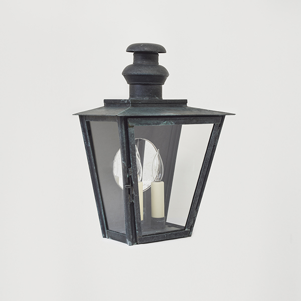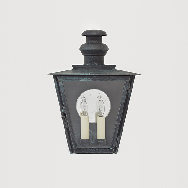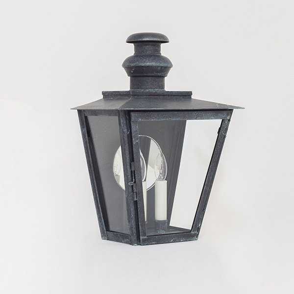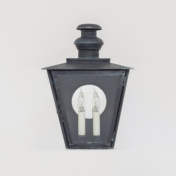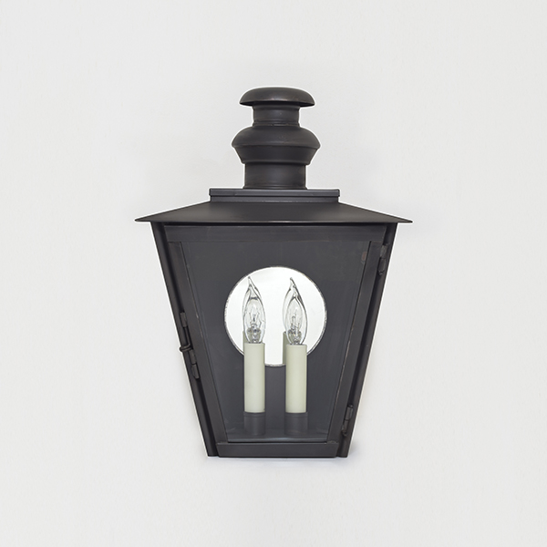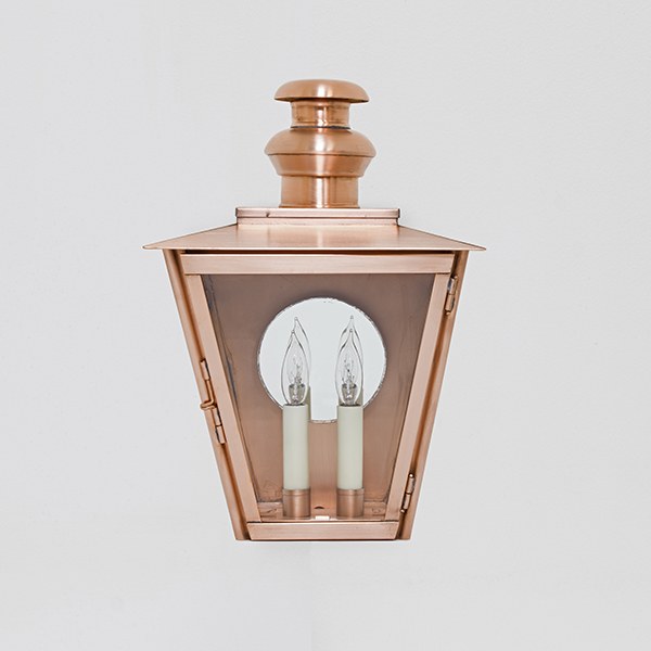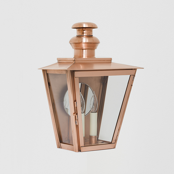 This closed top adaptation of the Philadelphia and French Station Lantern features direct mount solid backing with a traditional style round mirror. Candelabra(s) line the closed bottom pan, highlighting the classic details of this handcrafted fixture.