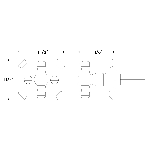 Small turned pawn brass thumb turn with square iron backplate.