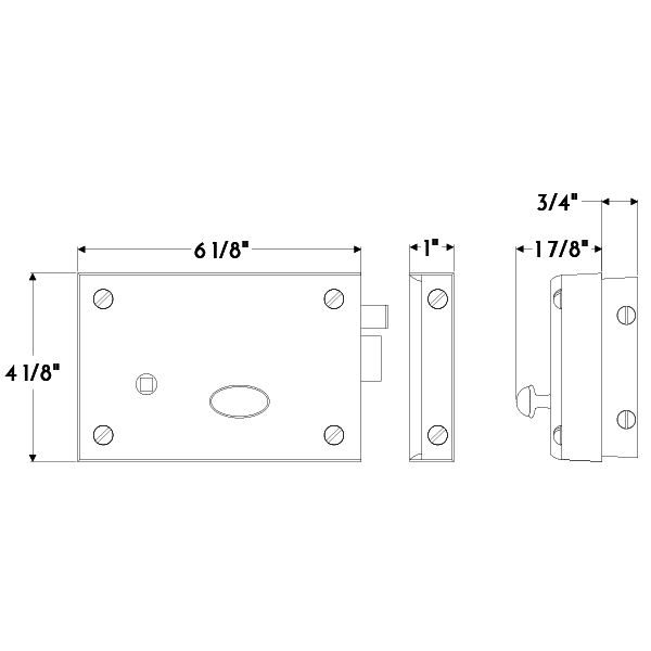 Small cast brass horizontal rim lock with thumb turn.