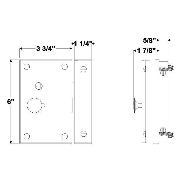 Small cast brass vertical rim lock with sliding deadbolt.
