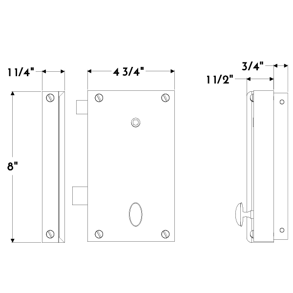 Large forged iron horizontal carpenter lock with turned thumb turn.