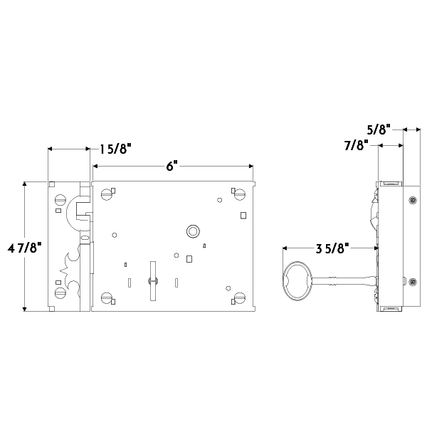 Small forged iron horizontal carpenter lock with fixed key and keeper.