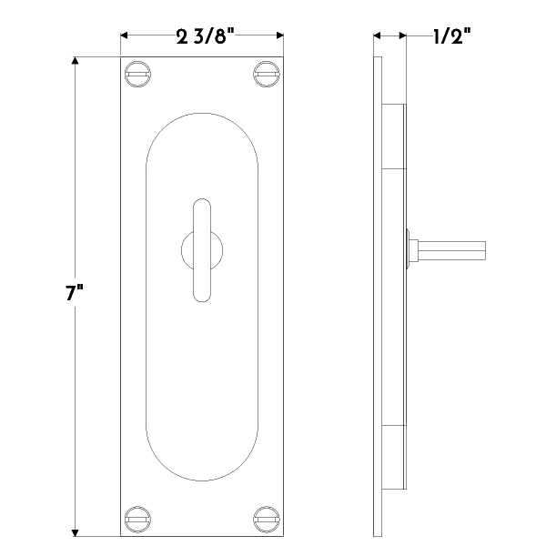 Small forged iron rectangular flush pull with iron thumb turn.
